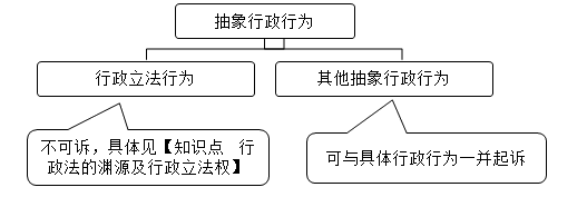 【注意】《行政诉讼法》已将规章以下的部分抽象行政行为纳入行政诉讼受案范围,但必须与具体行政行为一并提起诉讼,不得单独对其提起诉讼。