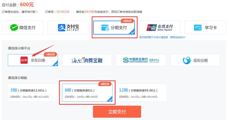 1.登录网校官网,进入资产评估师选课中心,选择对应科目的机考系统,提交订单,选择分期支付-京东白条-6期(免息)支付即可。