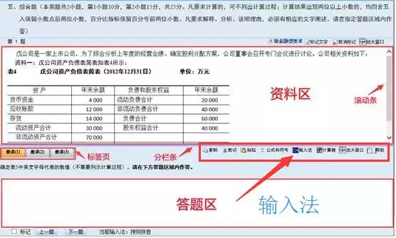 在答主观题时,即计算分析题、简答题、综合题答题时,我们在界面右下方可以看到“输入法”按钮: