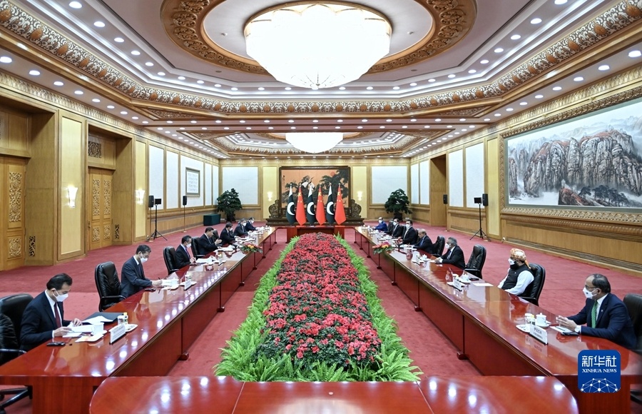 11月2日上午,国家主席习近平在北京人民大会堂会见来华进行正式访问的巴基斯坦总理夏巴兹。新华社记者 姚大伟 摄11月2日上午,国家主席习近平在北京人民大会堂会见来华进行正式访问的巴基斯坦总理夏巴兹。新华社记者 谢环驰 摄