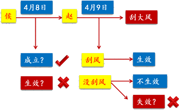 附条件与附期限的法律行为 【举例】 (1)判定标准 条件或成就或不成就;期限一定会到来。 (2)成立与生效 在条件满足或期限到来前,合同已经成立,但并未生效;条件满足或期限到来时,合同生效。