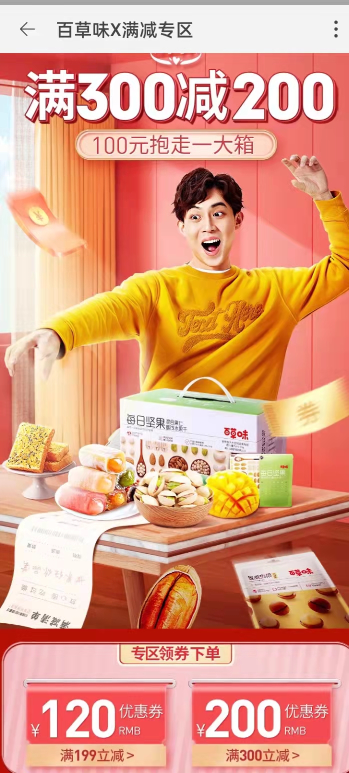 看到优惠的消息之后,我开始算账了:三只松鼠家:满300减210,相当于3折,满400减290相当于2.75折。百草味家:满199元减120元,相当于3.9折,满300减200相当于3.33折。从数据上看,三只松鼠家的小零食优惠力度更大一些,具体怎么选还要看零食种类和个人喜好。不说了不说了,挑零食去了~~