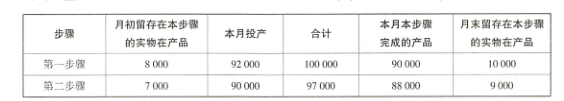 3.★甲企业使用同种原料生产联产品A和B,采用平行结转分步法计算产品成本。产品生产分为两个步骤,第一步骤对原料进行预处理后,直接转移到第二步骤进行深加工,生产出A. B两种产品,原料只在第一步骤生产开工时一次性投放,两个步骤的直接人工和制造费用随加工进度陆续发生,第一步骤和第二步骤均采用约当产量法在产成品和在产品之间分配成本,月末留存在本步骤的实物在产品的完工程度分别为60%和50%,联产品成本按照可变现净值法进行分配,其中: A产品可直接出售,售价为8. 58元/千克; B产品需继续加工,加工成本为0.336元千克,售价为7.2元/千克。A. B两种产品的产量比例为6:5。2017年9月相关成本核算资料如下:(1)本月产量资料(单位:千克)。