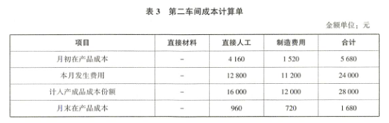 (2)第二车间的约当总产量如下: