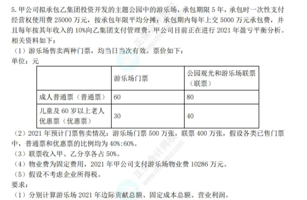 (3)如果甲公司计划2021年实现营业利润10000万元,拟将游乐场普通票提价至70元,其他票价不变,联票销售预计增长50%。假设其他条件不变,计算至少需要售卖多少万张游乐场门票才能实现目标利润。