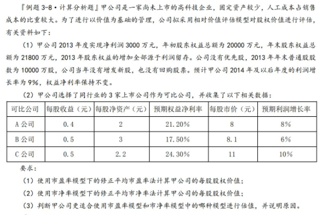 (3)由于甲公司的固定资产较少(或者由于甲公司属于高科技企业),净资产与企业价值关系不大,因此,市净率模型不适用:由于甲公司是连续盈利的企业,因此,用市盈率模型估值更合适。