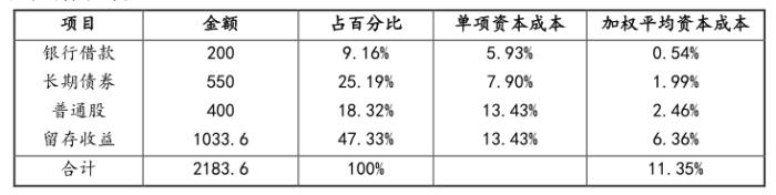 (7)当前国债的收益率为 4.5%,市场上普通股平均收益率为 12.5%。(计算单项资本成本时,百分数保留 2 位小数)
