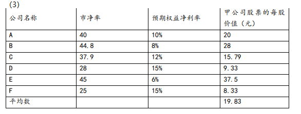 (2)甲公司股票的每股价值=修正平均市净率x目标企业预明权益争利率100x目标企业每股净资产