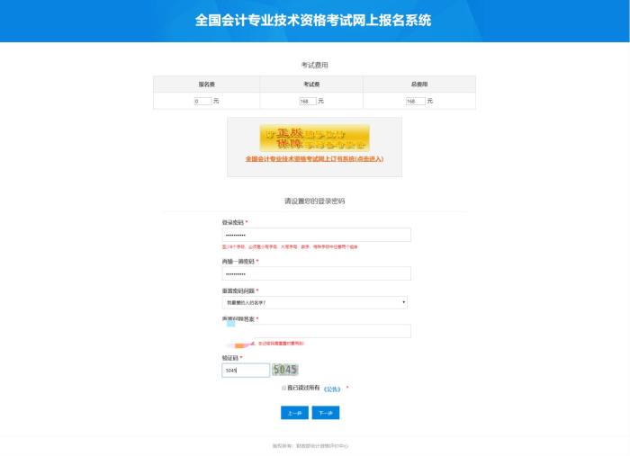 今天是2021年中级会计职称考试报名的第一天,我已经填写了信息,都出现了考试费用168元,设置登陆密码这个图片了,他让我下一步,然后就显示“返回”就直接回到登陆界面,但是没有哪里告诉我生成了报名注册号,我要怎么办??