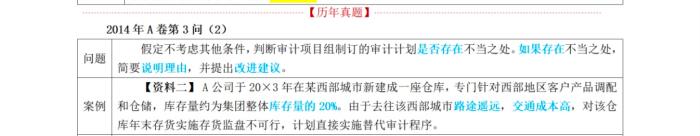 2,质疑:审计中的困难,时间,成本等因素不是不实施监盘的合理理由。该仓库占比20%对被审计单位很重要?