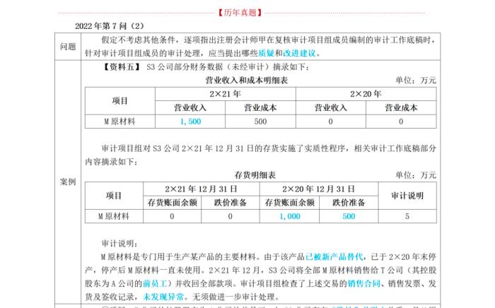 ①质疑:T公司的控股股东为A公司的前员工,与S3公司存在“隐性”关联方关系;且M原材料专门用干生产的产品已被替代,其销售价格仍远高于其账面成本不具有商业合理性,收入确认