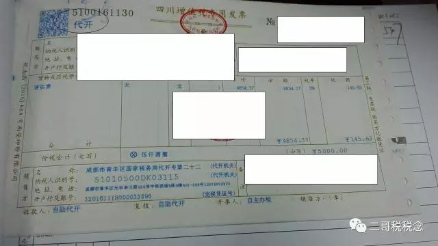 代开的发票是这样的。以后就是自开了,左上角就没有代开字样了。