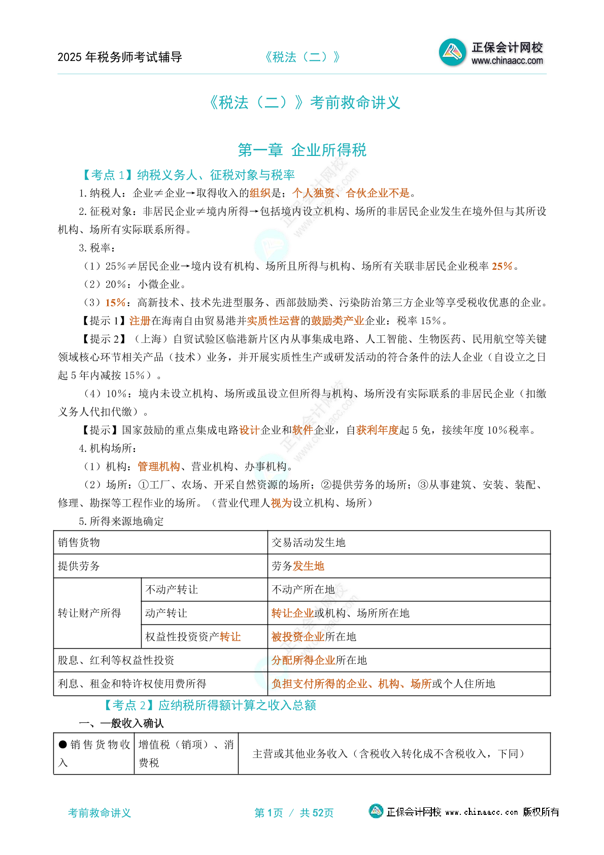 2025年税务师《税法(二)》考前救命讲义